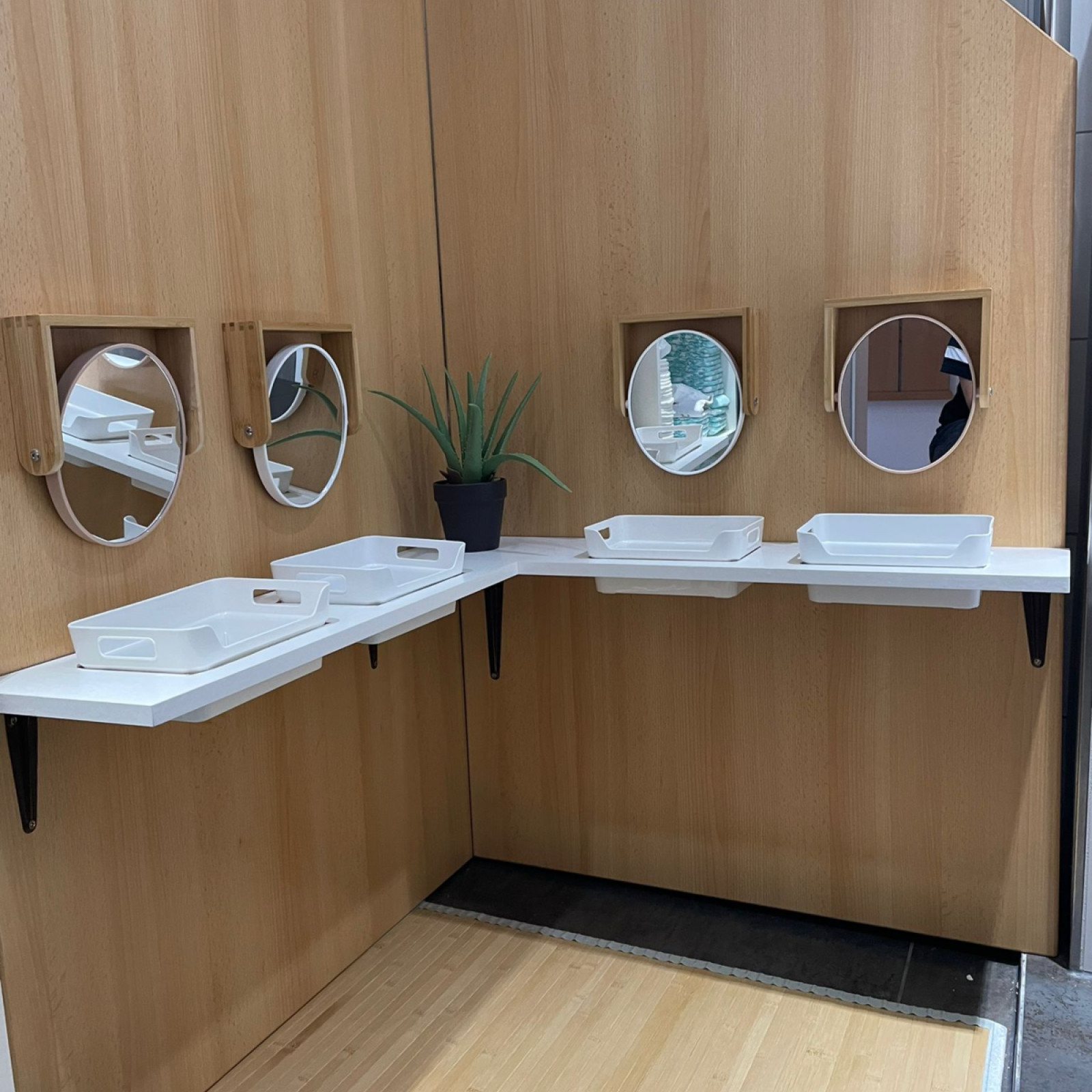 sein eigenes Fach und seinen eigenen Garderobenhaken.